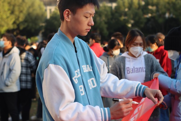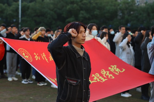 电子信息工程学院全体学生举起右手,眼神坚定。铿锵有力的誓言响彻田径场上的每个角落。“我宣誓,我将不负父母的期盼;不负恩师的厚望;不负青春的理想;不负母校的培养。成为厚德笃学,求实拓新的武职新青年,砥砺前行,用青春热血书写新时代的辉煌篇章。请党放心,请国家放心,强国有我,复兴有我!”随后,各班代表在横幅上进行签字,一笔一划写下的是他们坚定的决心。