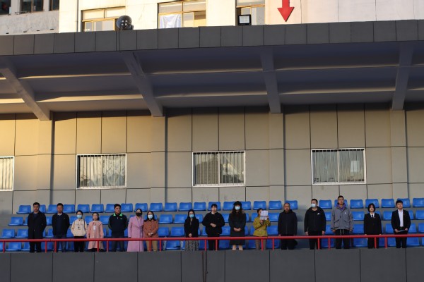 上午6时50分,升旗仪式正式开始。着装整齐的国旗仪仗队在清晨第一缕阳光下向田径场走来。他们步伐铿锵,英姿飒爽,肩负国旗,自信盎然。全体师生肃穆而立,齐唱国歌,注视着五星红旗冉冉升起。